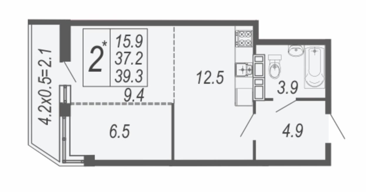 Просторная однокомнатная. Благодаря большой лоджии можно сделать двухкомнатную.