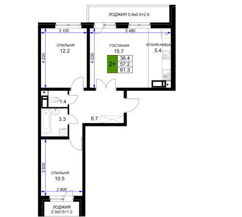 | Площадь, кв.м. | 61.3 |