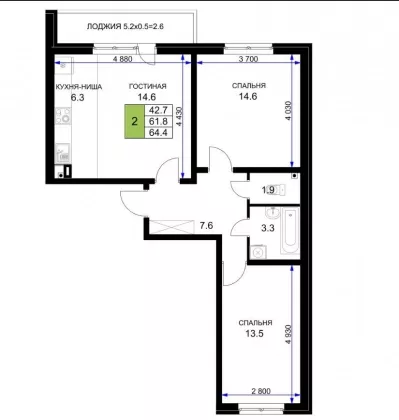 | Площадь, кв.м. | 64.4 |