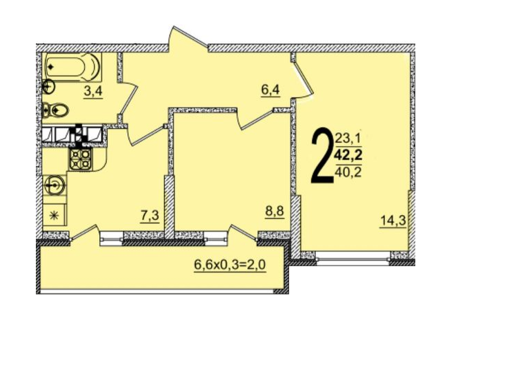 Продается 2-х комн. новостройка, 45 кв.м., 10/19 эт