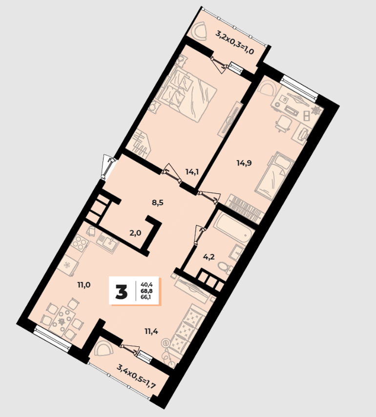 | Площадь, кв.м. | 68.8 |