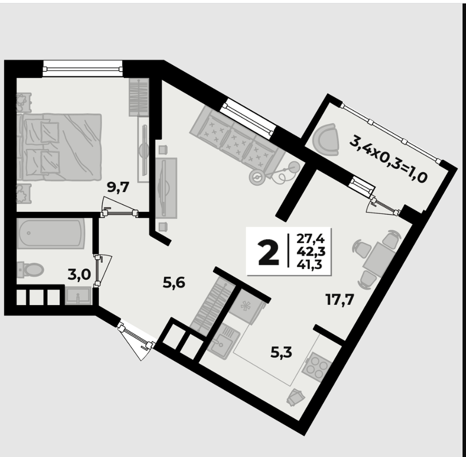Продается 2-х комн. новостройка, 42 кв.м., 14/19 эт