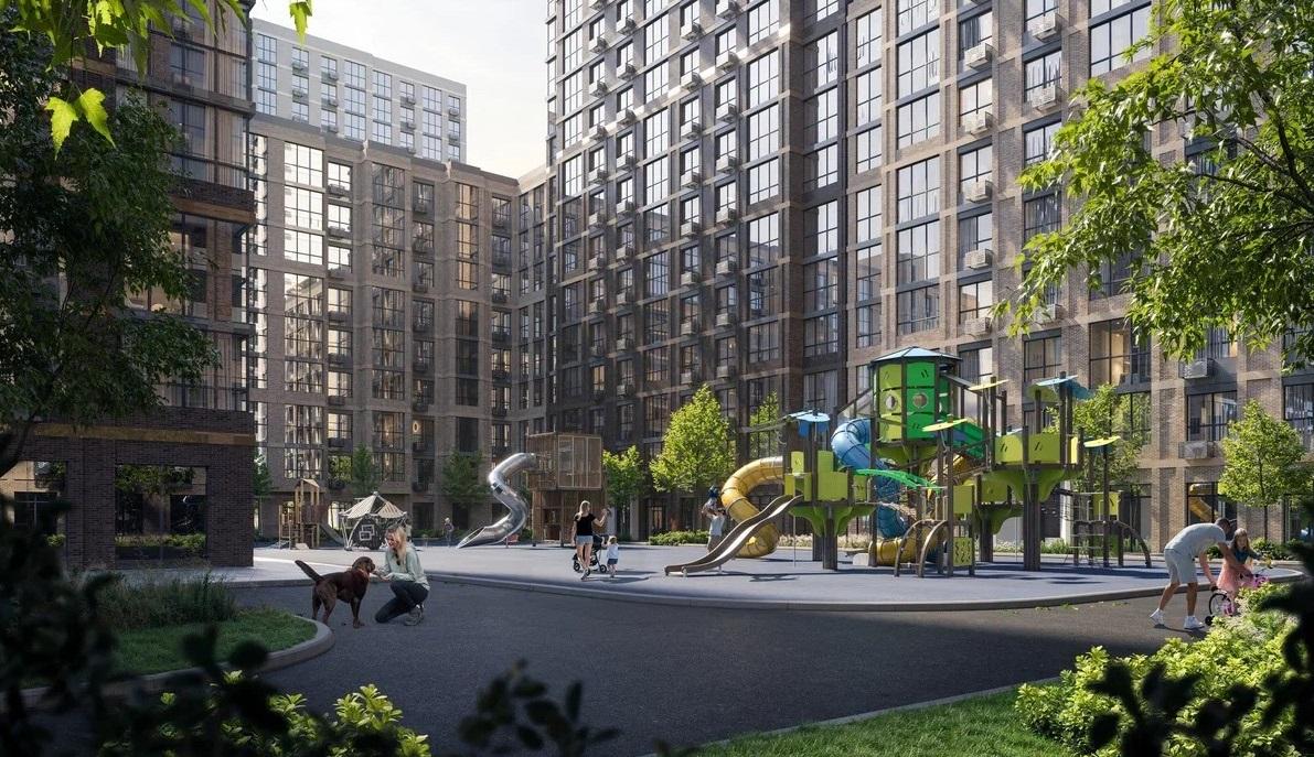 На территории комплекса есть игровые комплексы и спортивные площадки с безопасным покрытием. Школа на 1 725 мест и 5 детских садов по 310−350 мест каждый. Качественное образование от детского сада до выпускного класса.