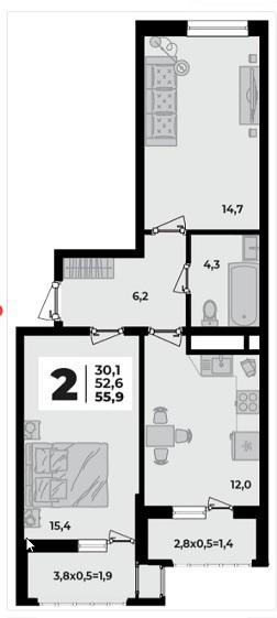 Продается 2-х комн. новостройка, 55.9 кв.м., 5/8 эт