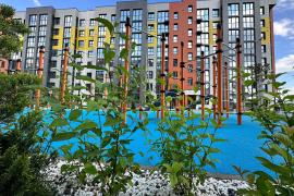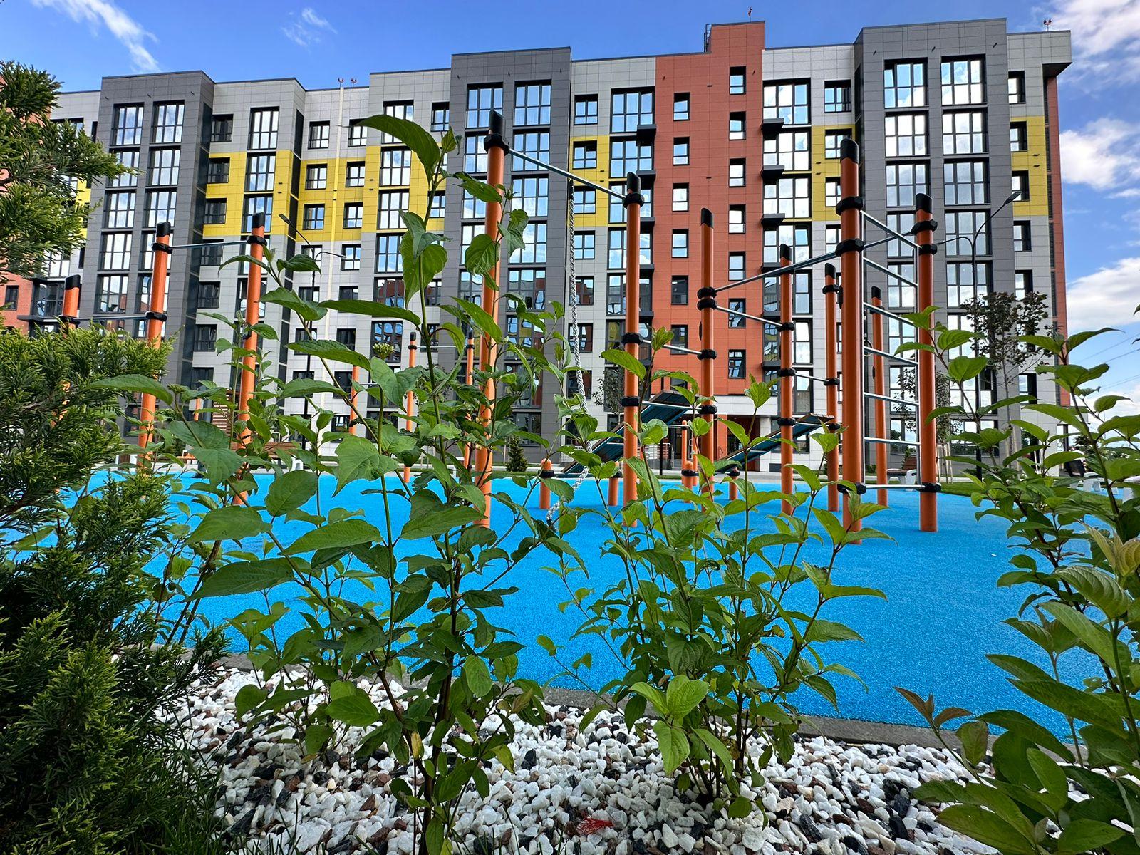 Двор без машин, закрытая благоустроеная придомовая территория, много зелени, спортивные и игровые площадки. Безопасные пешеходные зоны, велодорожки, комфортная среда.