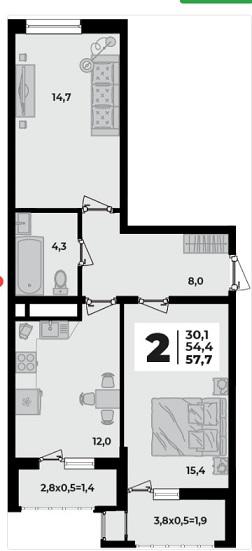 | Площадь, кв.м. | 57.7 |