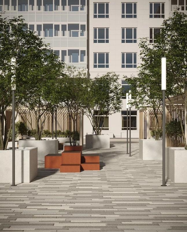 Детские площадки, свой детский сад, 4 зоны для спорта, много парковочных мест.