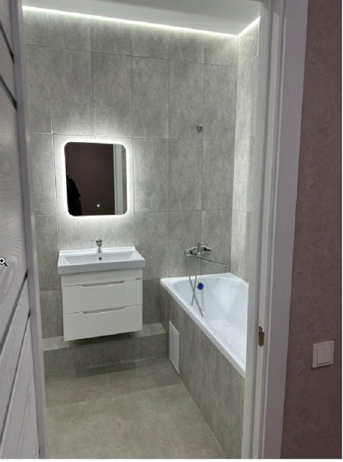 В квартире качественный ремонт, современная исталяция в сан.узле, хорошие обои и ламинат с высокой износостойкостью, подвесные раковины и зеркало с подсветкой, лоджия тоже с ремонтом.