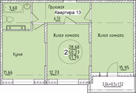 Продается 2-х комн. новостройка, 51.79 кв.м., 12/19 эт