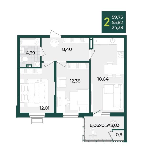 Продается 2-х комн. новостройка, 59.75 кв.м., 12/21 эт