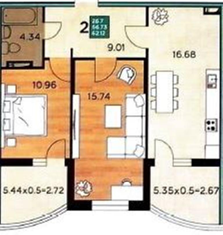 | Жилая площадь | 26.7 |