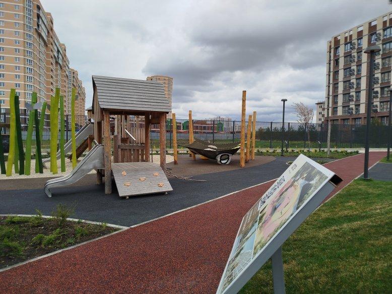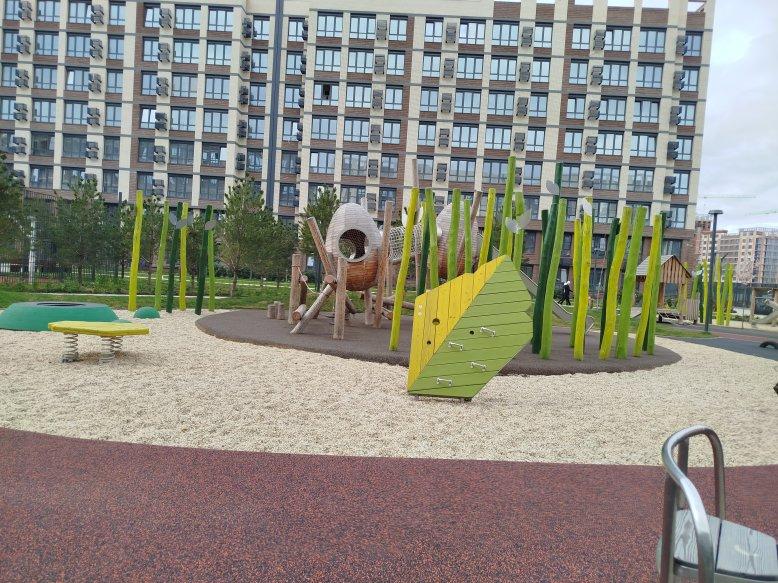 Скейтпарк и скалодром, тарзанка на уровне2,5 метра- хит подростковой площадки, дорожка для бега с комфортным покрытием.