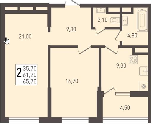 Продается 2-х комн. новостройка, 65.7 кв.м., 4/8 эт