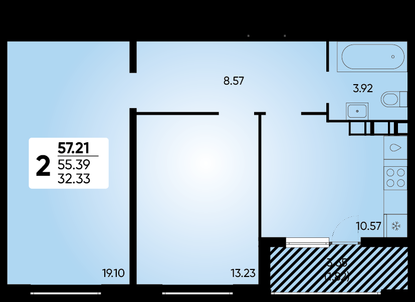 Продается 2-х комн. новостройка, 57.21 кв.м., 8/18 эт