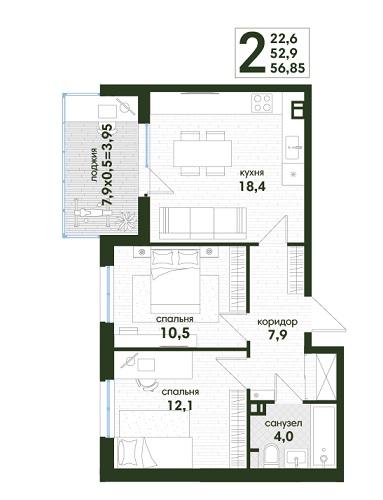 | Площадь, кв.м. | 56.85 |