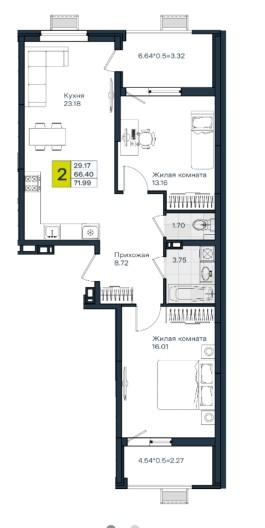 Продается 2-х комн. новостройка, 71.99 кв.м., 6/8 эт