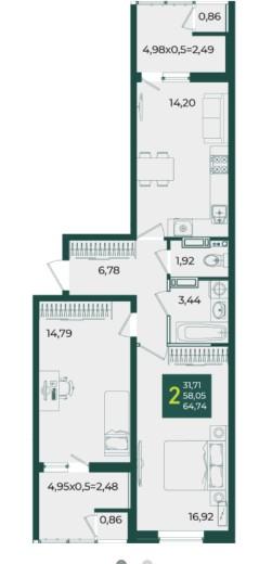 | Площадь, кв.м. | 64.74 |