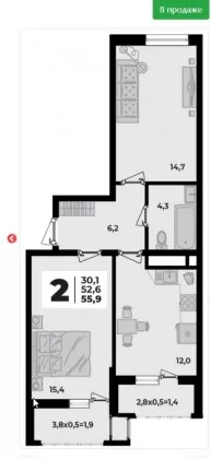 Продается 2-х комн. новостройка, 55.9 кв.м., 7/8 эт