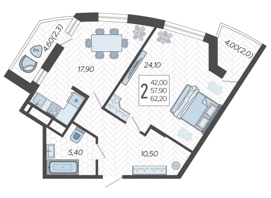 Продается 2-х комн. новостройка, 62.2 кв.м., 8/16 эт