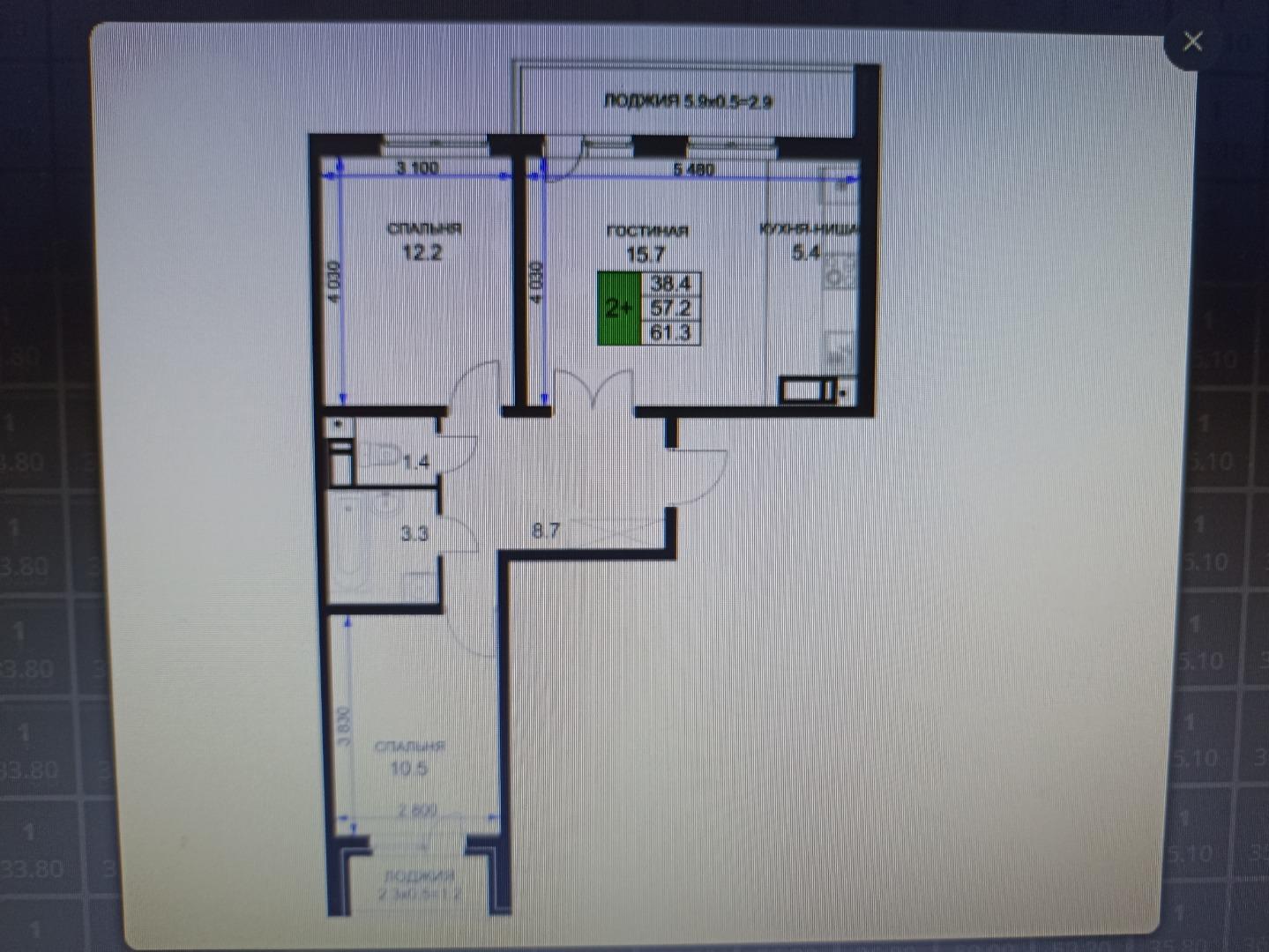 | Площадь, кв.м. | 61.3 |