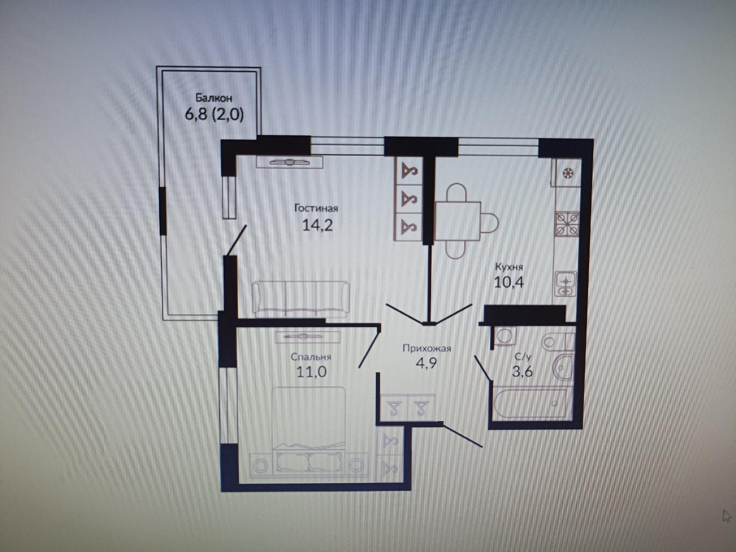 Продается 2-х комн. новостройка, 46.1 кв.м., 22/23 эт