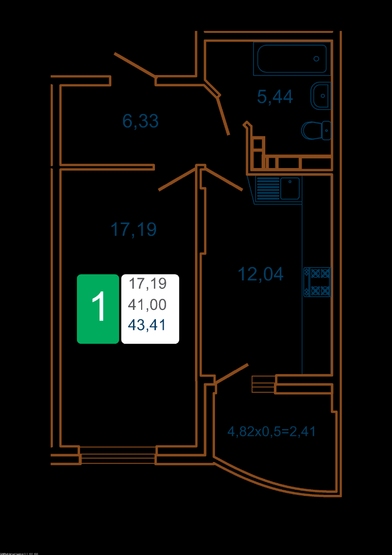 Продается однокомнатная новостройка, 45.1 кв.м., 12/16 эт