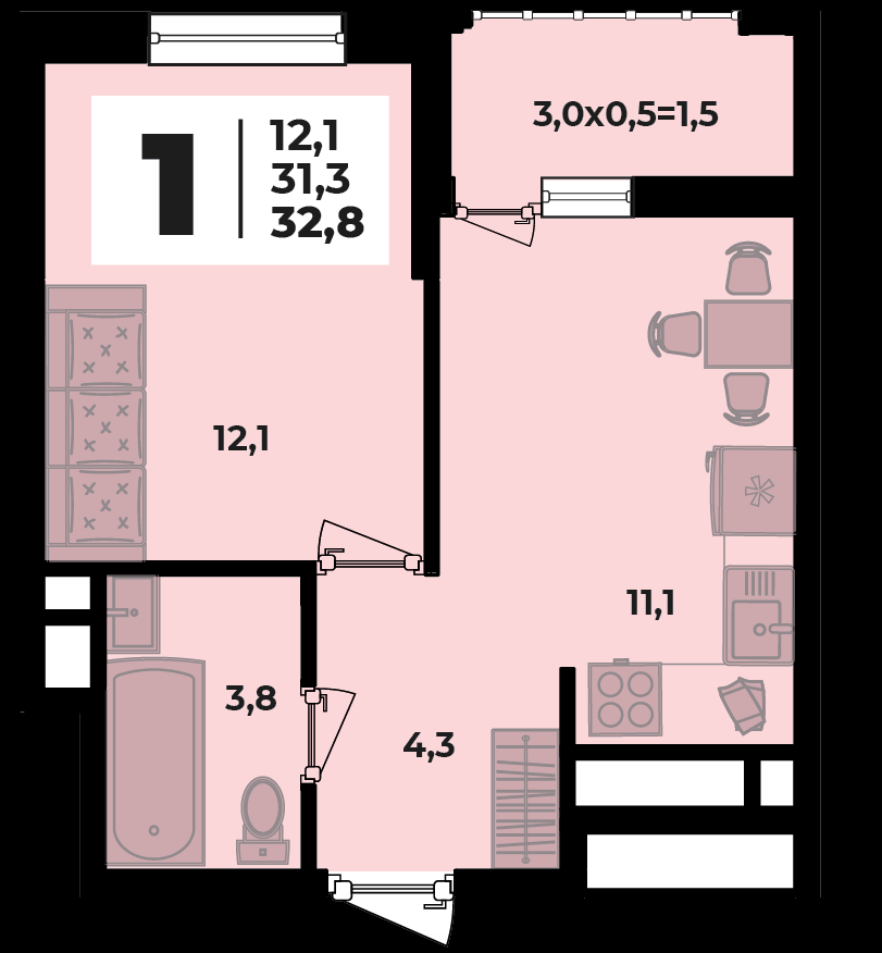 Продается однокомнатная новостройка, 32.8 кв.м., 5/8 эт