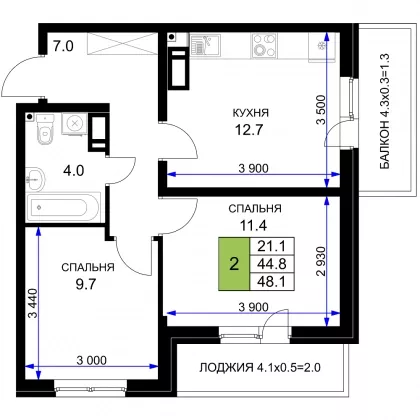 Продается 2-х комн. новостройка, 48 кв.м., 10/16 эт