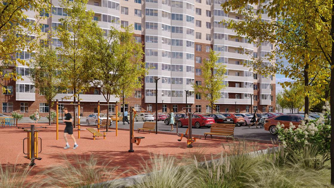 Дом класса комфорт, организована безбарьерная среда, детские и спортивные площадки, зеленая территория вокруг дома