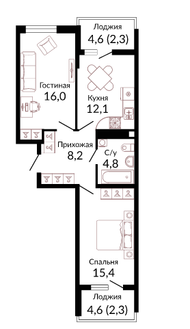 В квартире качественный предчистовой ремонт, комнаты правильной формы, две лоджии!