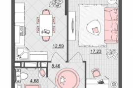 Продается однокомнатная новостройка, 44.64 кв.м., 11/19 эт