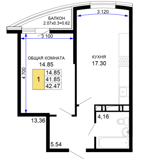 В продаже шикарная однокомнатная квартира в новом современном комплексе класса комфорт+!