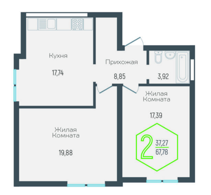 Продается 2-х комн. новостройка, 67.78 кв.м., 2/3 эт