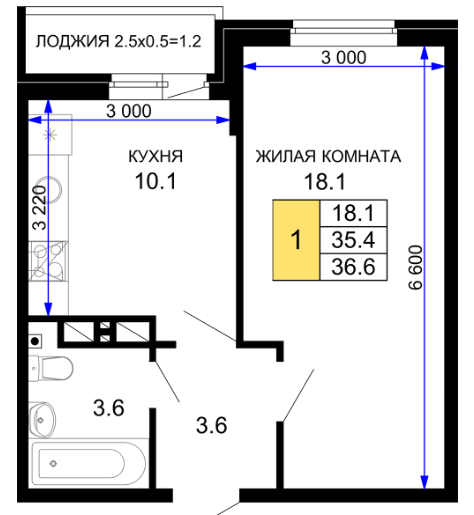 Продается однокомнатная новостройка, 36.6 кв.м., 12/16 эт