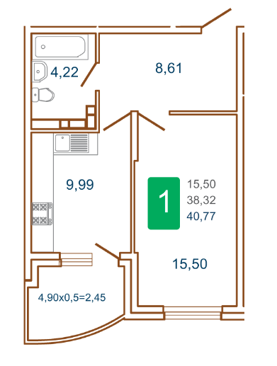 Продается однокомнатная новостройка, 42.2 кв.м., 8/16 эт