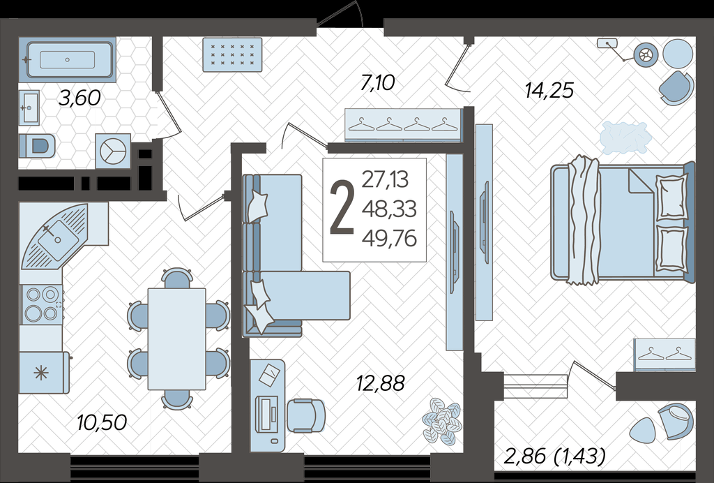 Продается 2-х комн. новостройка, 50.5 кв.м., 11/16 эт