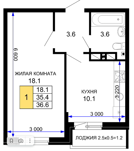 Продается однокомнатная новостройка, 36.6 кв.м., 12/16 эт