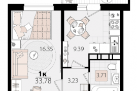 Продается однокомнатная новостройка, 33.78 кв.м., 6/12 эт