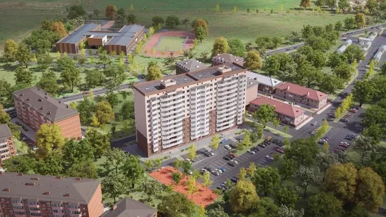 Дом класса комфорт, организована безбарьерная среда, детские и спортивные площадки, зеленая территория вокруг дома