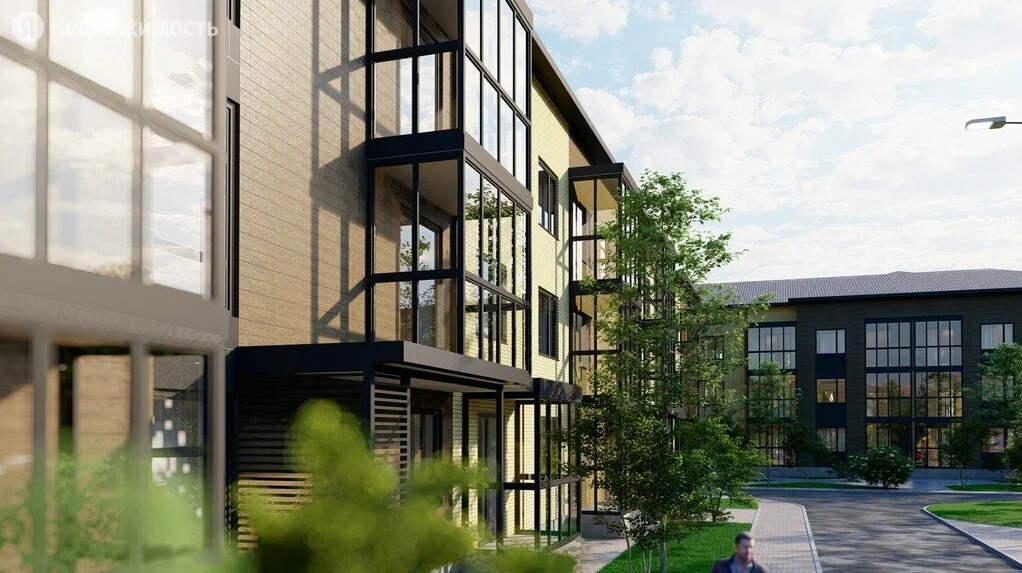 Красивые фасады зданий, дизайнерские входные группы, панорамное остекление на лоджиях. Организована безбарьерная среда.