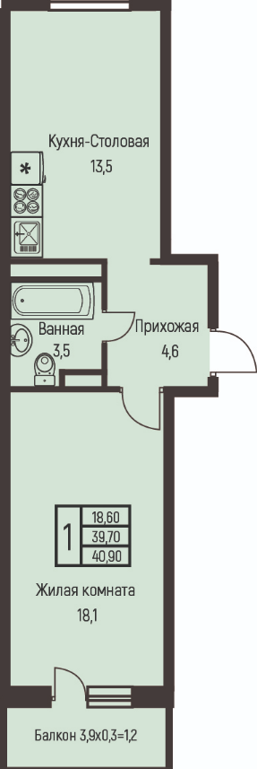 Продается однокомнатная новостройка, 41 кв.м., 2/3 эт