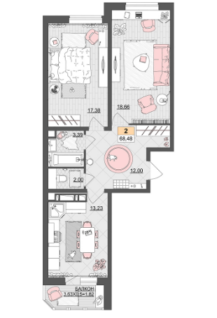 Продается 2-х комн. новостройка, 68.48 кв.м., 11/19 эт