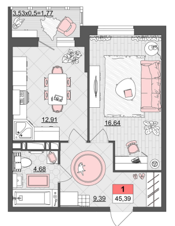 В продаже 1к квартира улучшенной планировки в новом современном комплексе класса комфорт+
