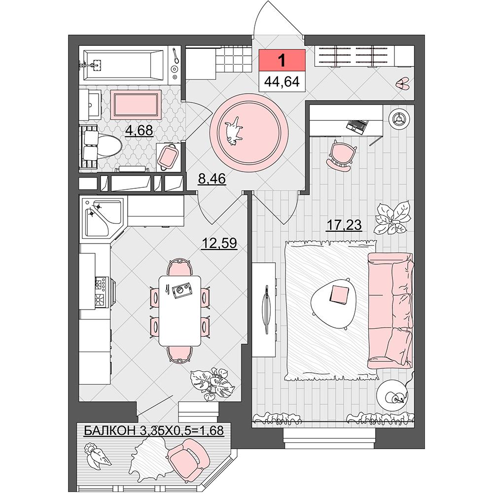 Продается однокомнатная новостройка, 44 кв.м., 19/24 эт