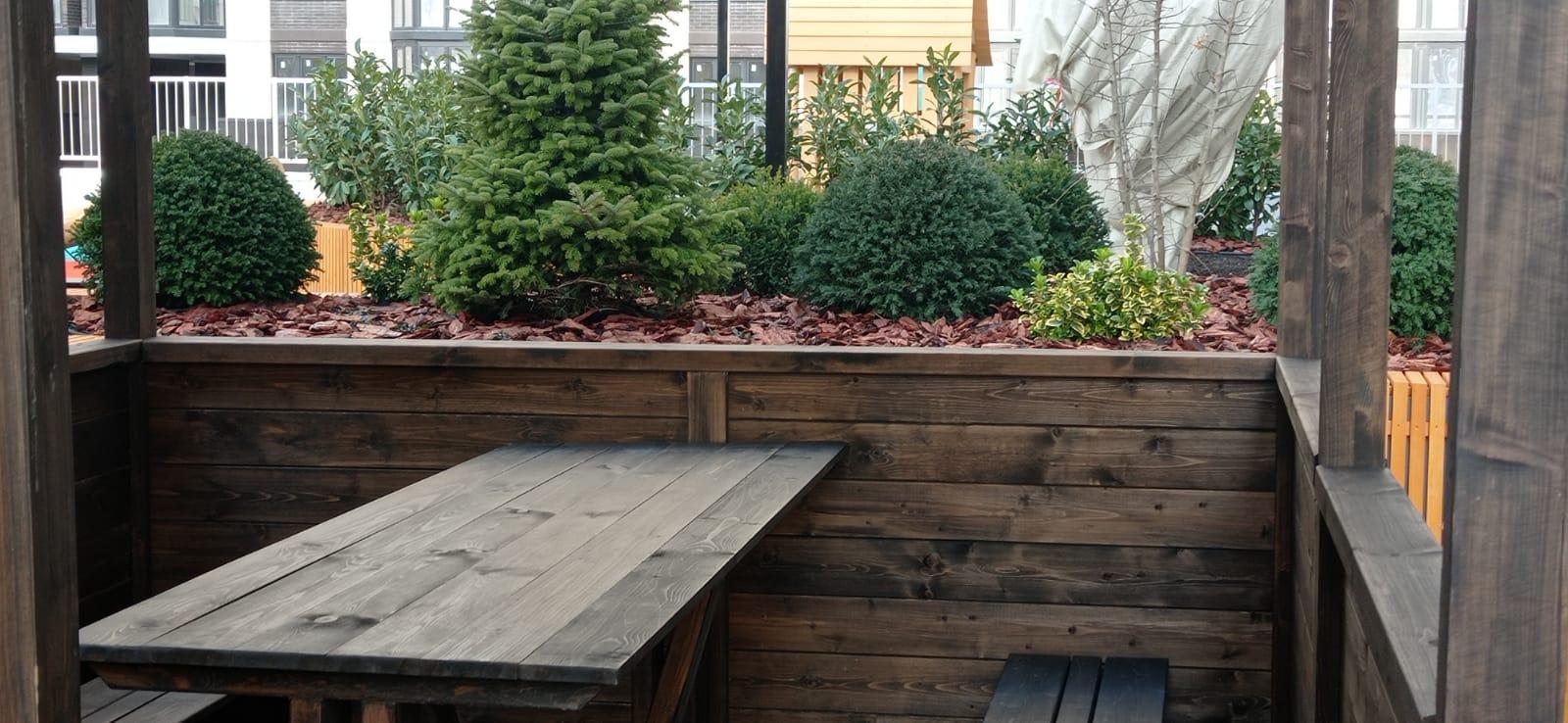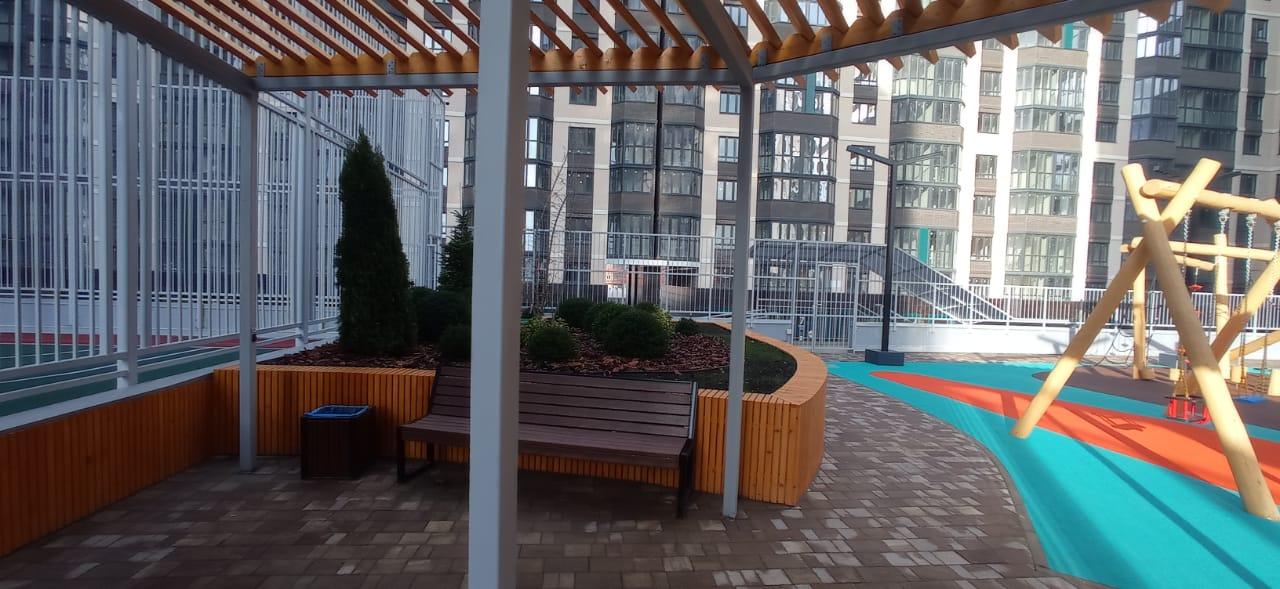 Шикарная придомовая территория, есть стилобат, паркинг для авто, мангальная зона, беседки, двор с ландшафтным озеленением