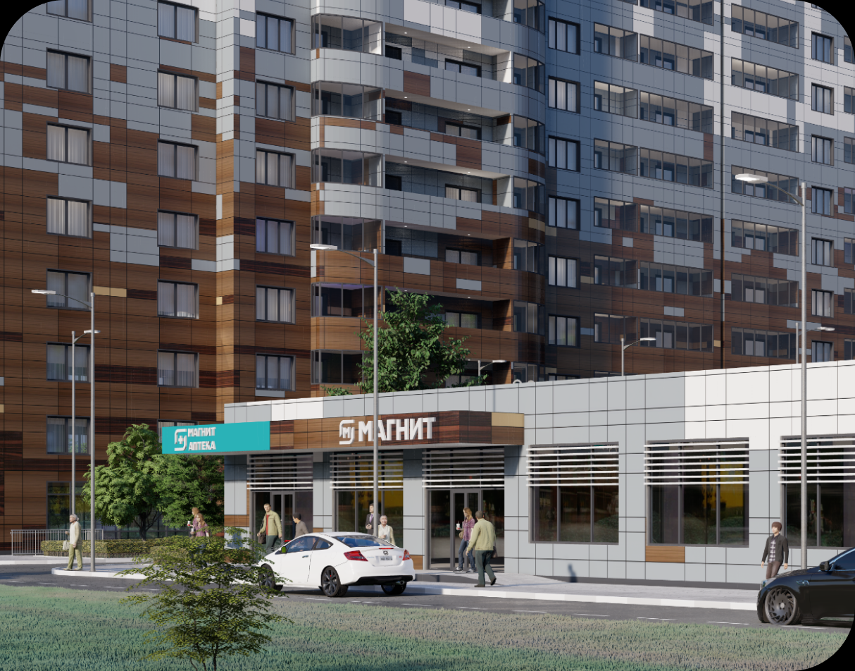 В шаговой доступности вся инфраструктура магазины, кафе, салоны, аптеки, медицинский центр