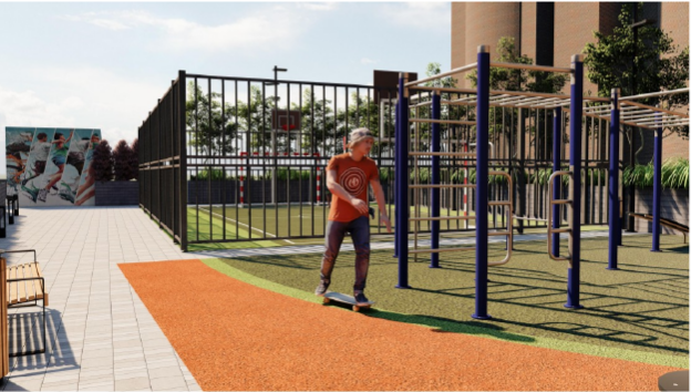 В комплексе эксплуатируемая кровля стилобата, и фитнес центра.