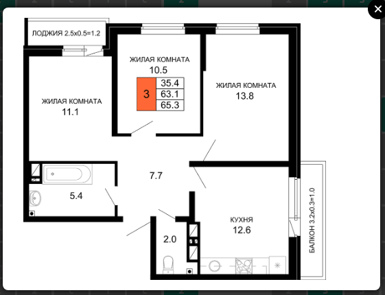 | Площадь, кв.м. | 65.3 |