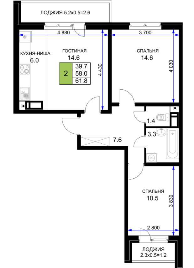 Продается 2-х комн. новостройка, 61.8 кв.м., 10/16 эт