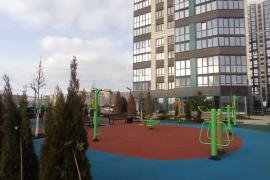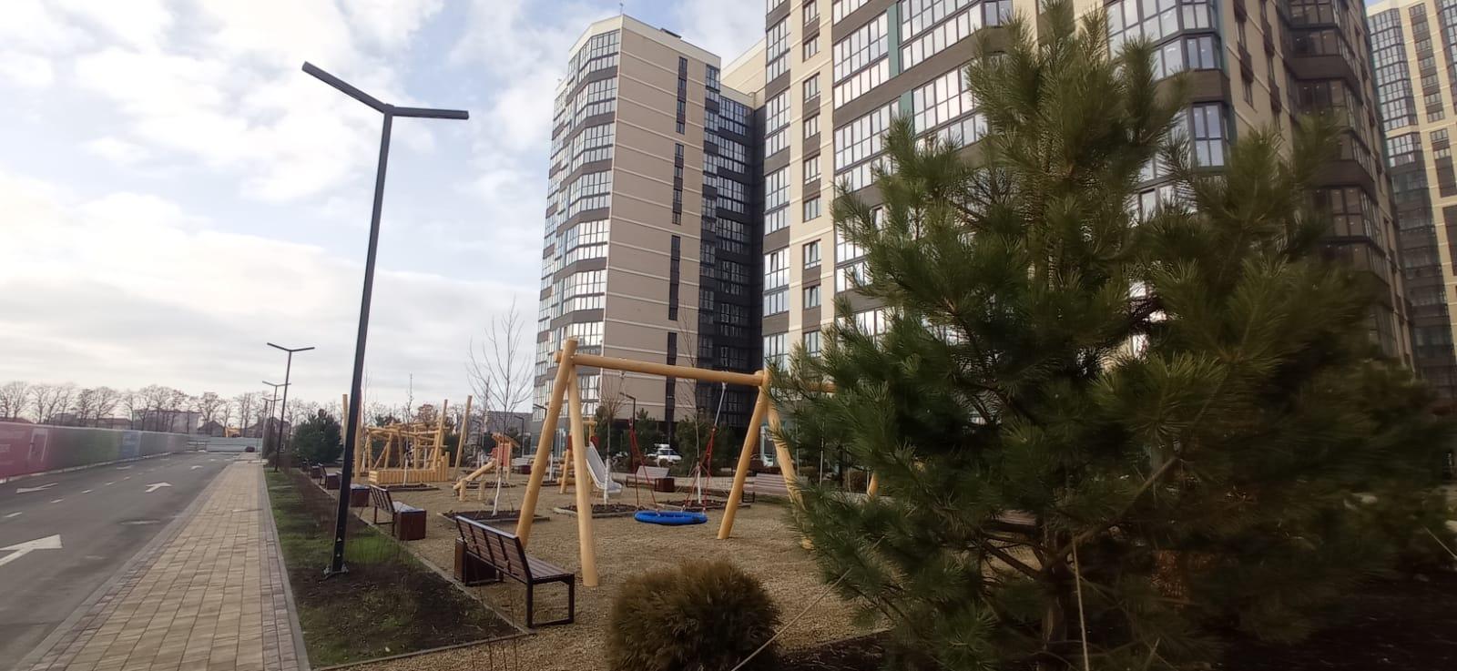 Шикарная придомовая территория-стилобаты с современными безопасными детскими площадками , баскетбольным и футбольным полем, зонами барбекю и беседками.